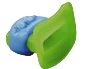 A strong, breathable mouthpiece. It is attached to the patient’s mouth using a quick-release toothpaste, making it safe and comfortable to use. No water or heating is required to activate the toothpaste. Once the BiteLok is attached to the patient’s mouth, a thermoplastic mask is placed over it. While the mask is still warm, the Quickfit tool molds the mask around the edges of the BiteLok™ mouthpiece without the need for hands. The result is a secure, repeatable mouthpiece that attaches to both the patient and the mask, and is also removable for cleaning.