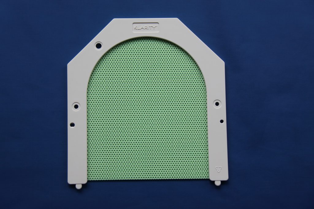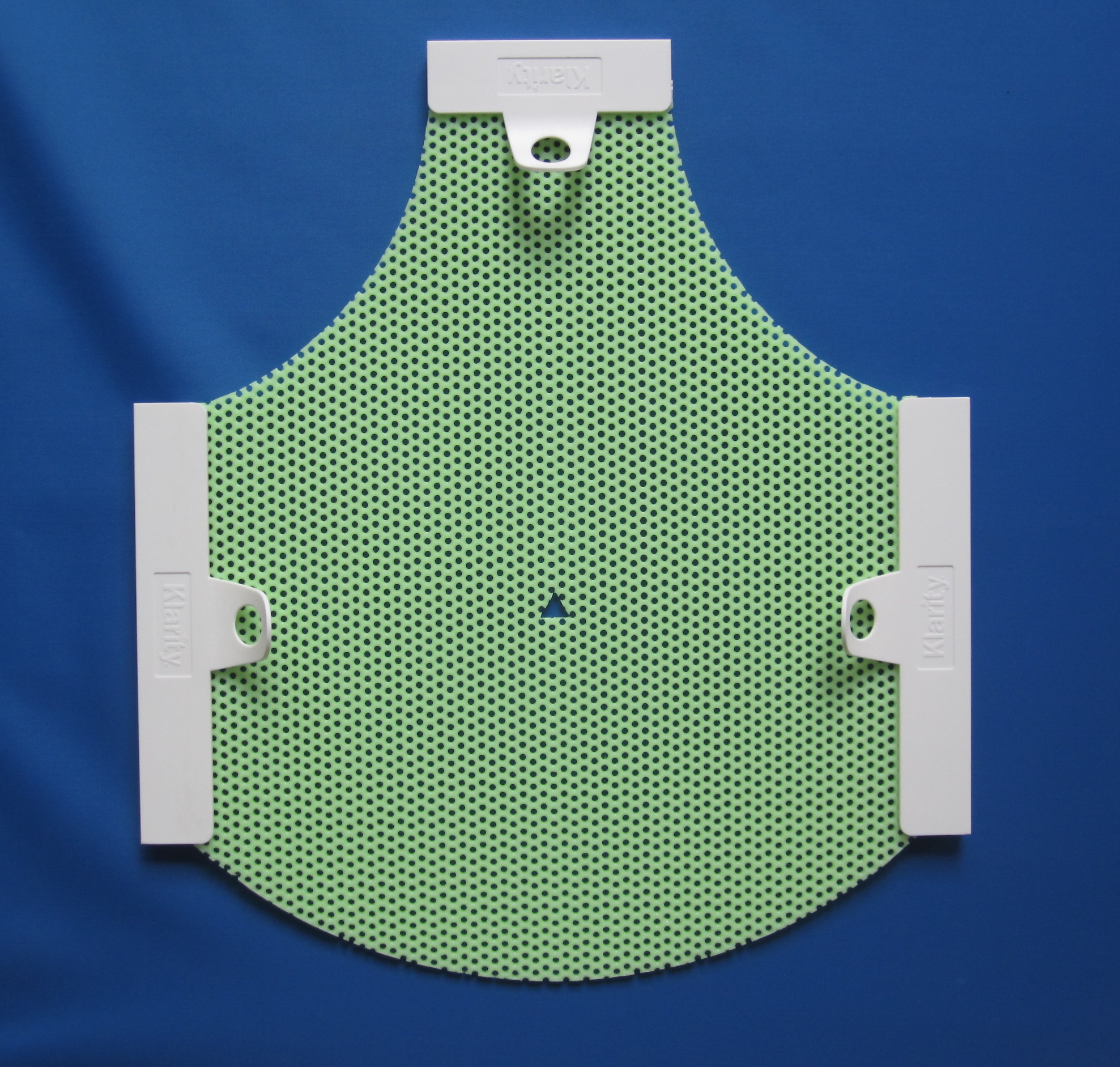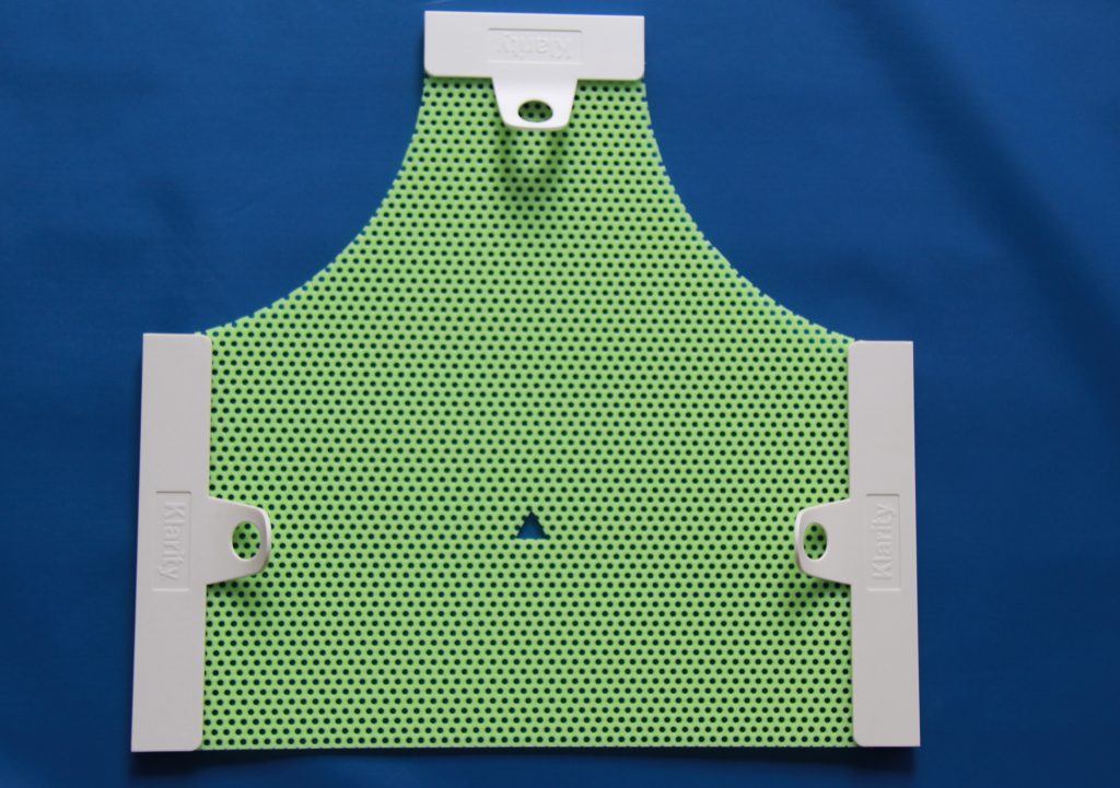 ماسکهای ترموپلاستیک Klarity برای ثابت نگه داشتن بیمار در طول رادیوتراپی طراحی شدهاند تا پرتو دقیقاً به محل تومور برسد و از آسیب به بافتهای سالم جلوگیری شود. نوع Klarity Green پیشرفتهتر بوده، استحکام بالاتری دارد، غیرچسبنده است و کمترین میزان جمعشدگی را دارد که باعث راحتی بیمار میشود. این ماسکها بهراحتی با حرارت آب یا Oven نرم شده و قالبگیری میشوند و پس از سرد شدن بسیار محکم و مقاوم میگردند.